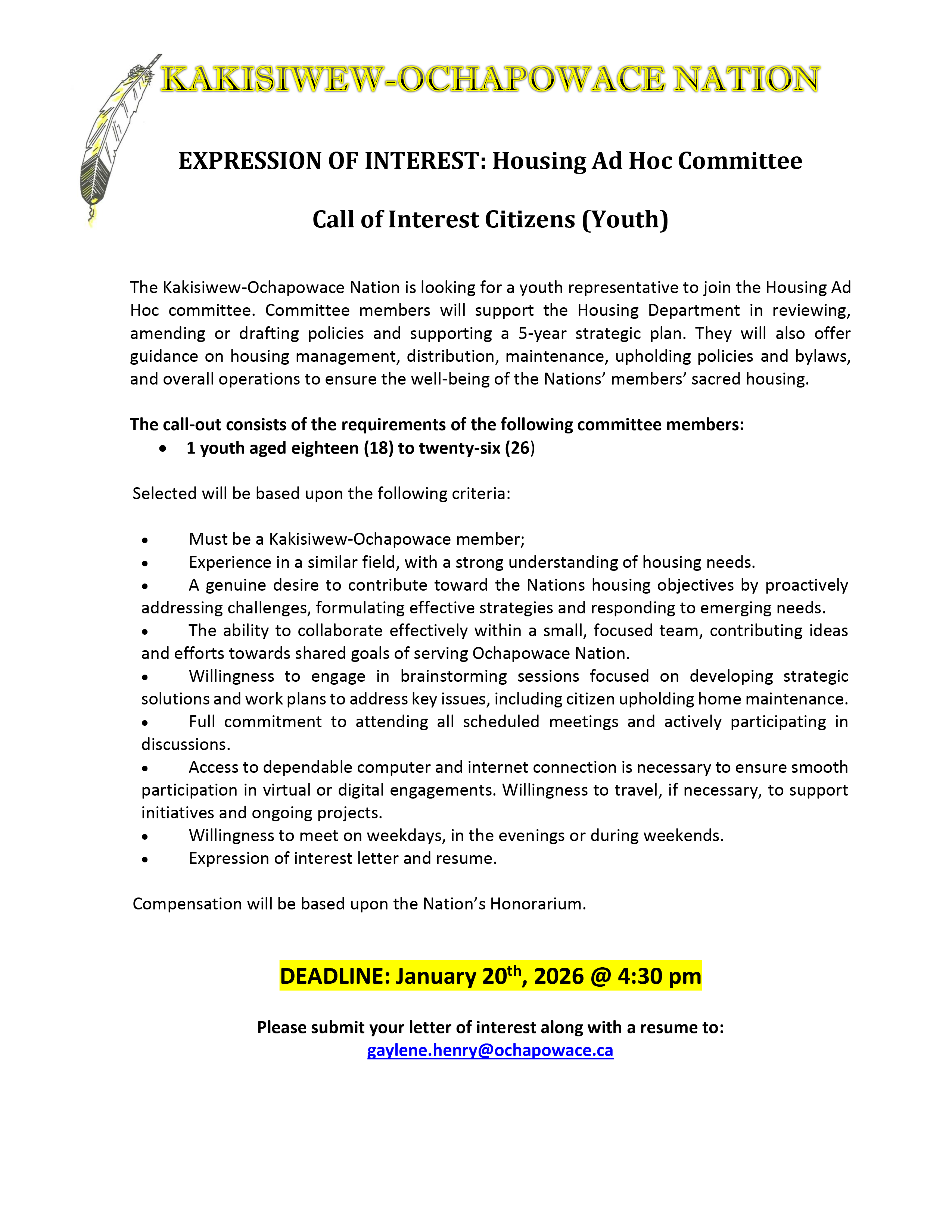 EXPRESSION OF INTEREST: Housing Ad Hoc Committee Call of Interest