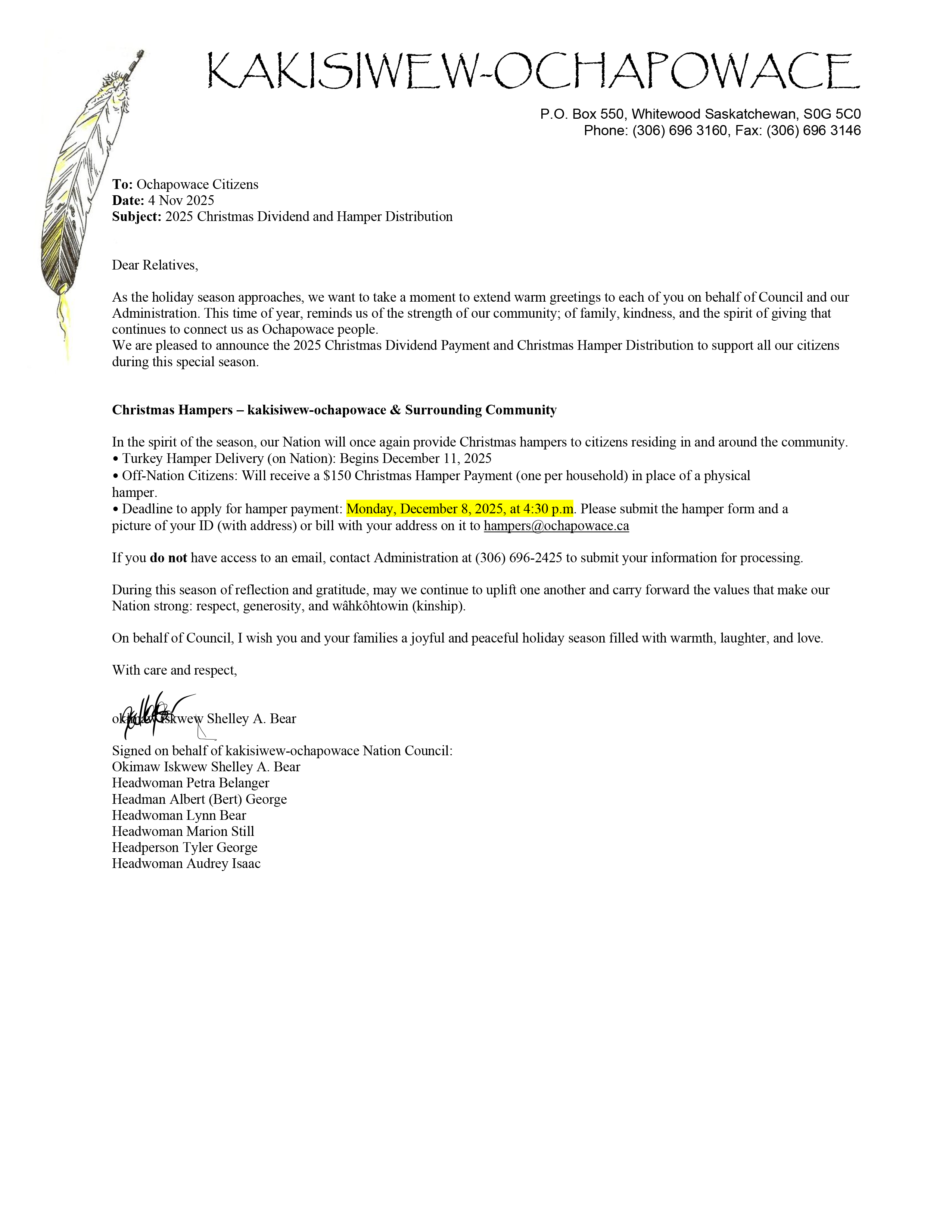 Please see below the downloadable 2025 Off–Nation Hamper Distribution form